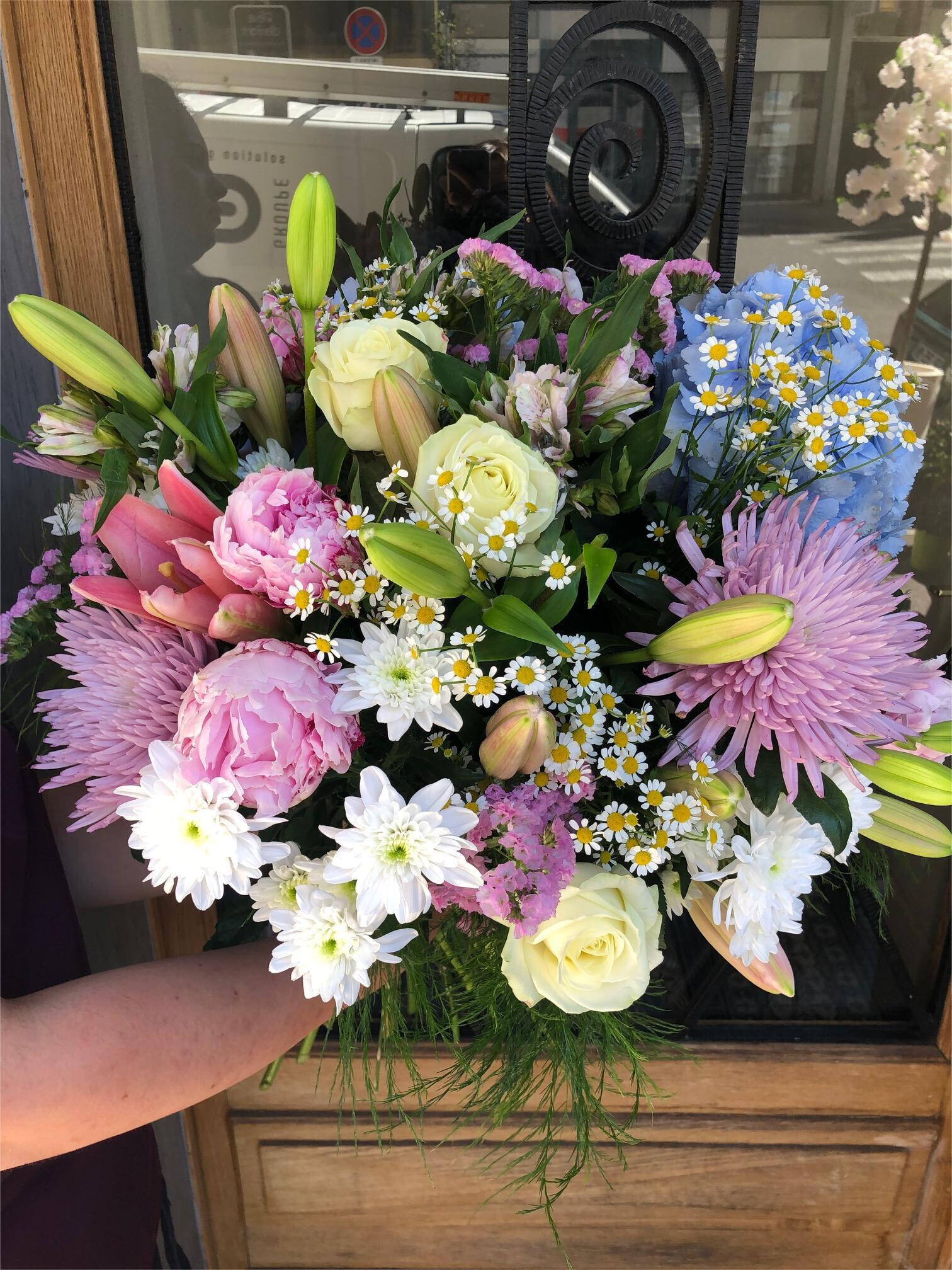 Une importante partie de notre choix floral est de production Française. (Alstromeria, renoncule, pivoine, certaines roses, tournesol, œillet, glaïeul, lys, tulipe à longue tige, mimosa, …)